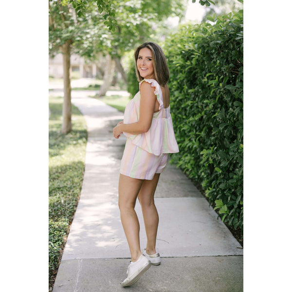 How fun is our Karlie Clothes Rainbow Smocked Waist Shorts?! We are loving this fun summer set. Pair this with our Karlie Clothes Rainbow Ruffle Tank for a full look! We suggest sizing up in these shorts, Emily is wearing...