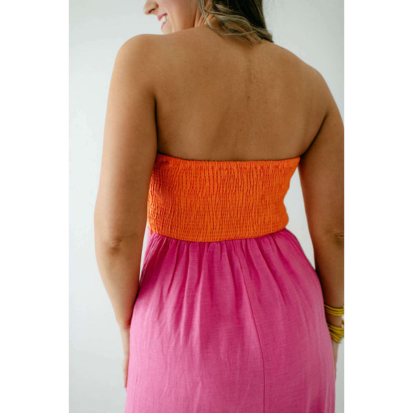 Step into effortless style with the Karlie Colorblock Linen Strapless Maxi Dress. Featuring a vibrant colorblock design, this dress brings a playful and fresh vibe to your wardrobe. Crafted from breathable linen, it keeps you cool and comfortable all day....
