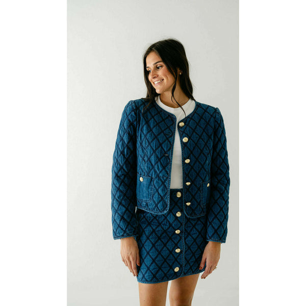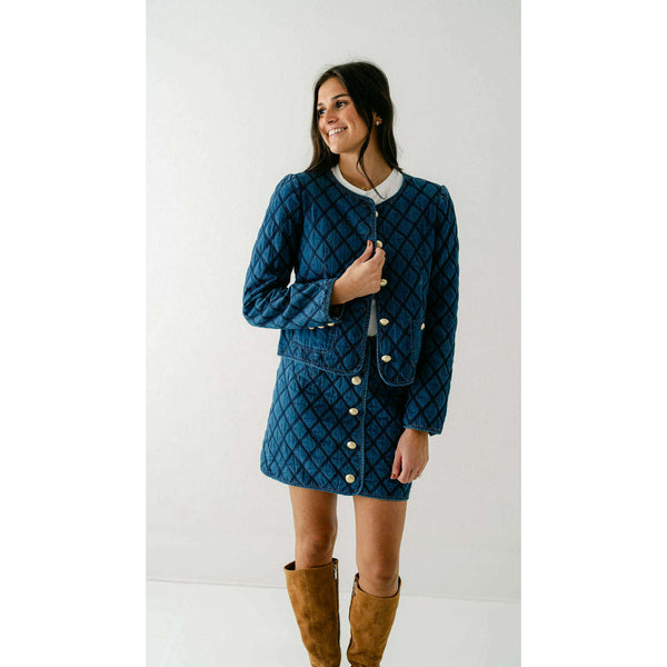This adorable Karlie denim jacket features charming gold buttons that add a touch of sophistication to any outfit, making it the perfect statement piece for your wardrobe. Style it with our Karlie skirt to create a complete, coordinated look that's...