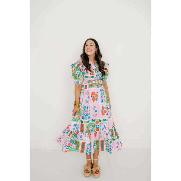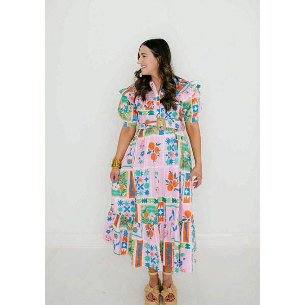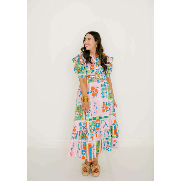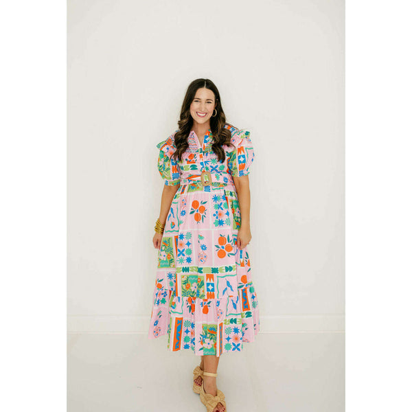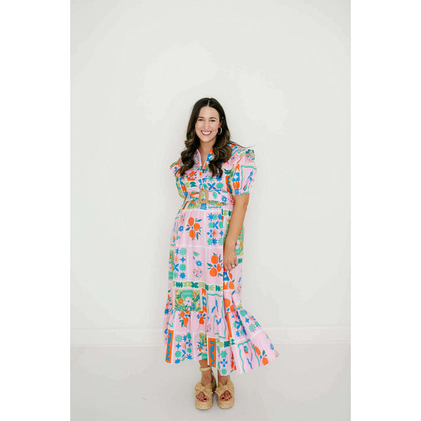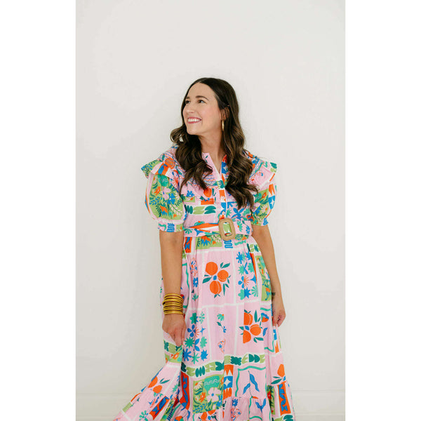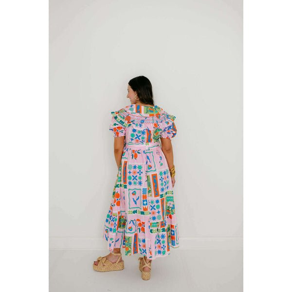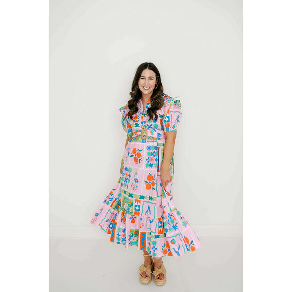 Introducing the Karlie Floral Frame Peter Pan Maxi Dress—a playful piece that brings joy to your wardrobe with its charming floral print and whimsical design. The delicate Peter Pan collar and flowing maxi silhouette create an effortlessly fun, feminine look...