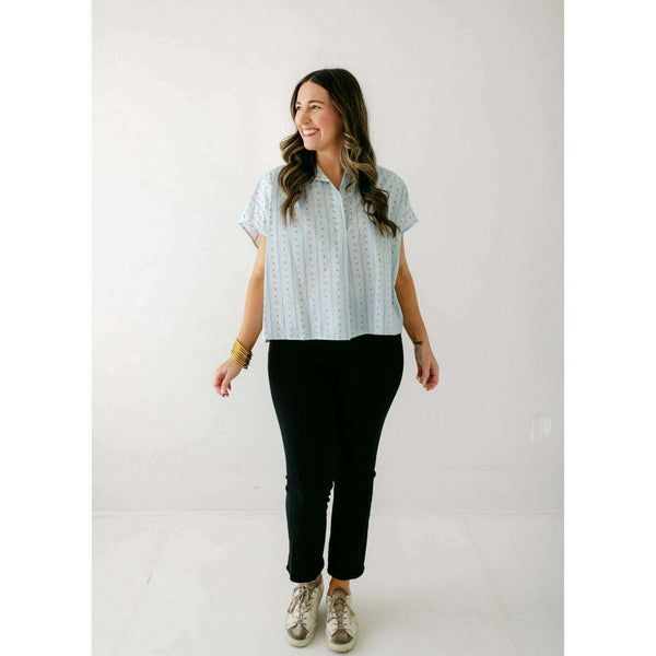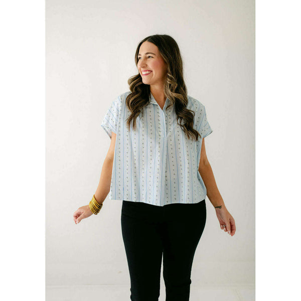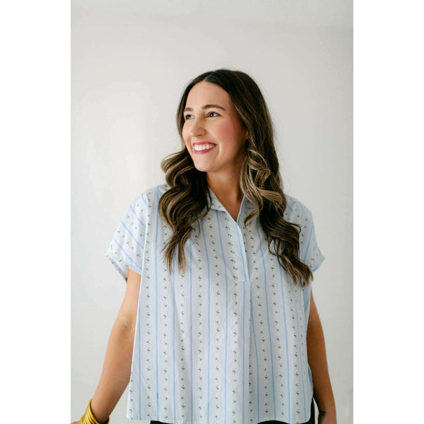 Elevate your wardrobe with the Karlie Floral Stripe Vneck Collar Top, blending delicate floral patterns with classic stripes for a fresh, stylish look. Its flattering V-neck and crisp collar add a touch of sophistication, making it perfect for both casual...