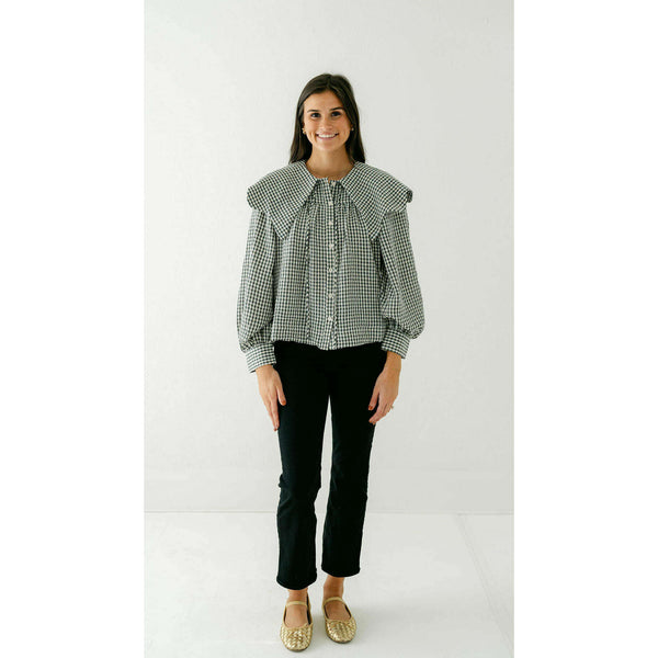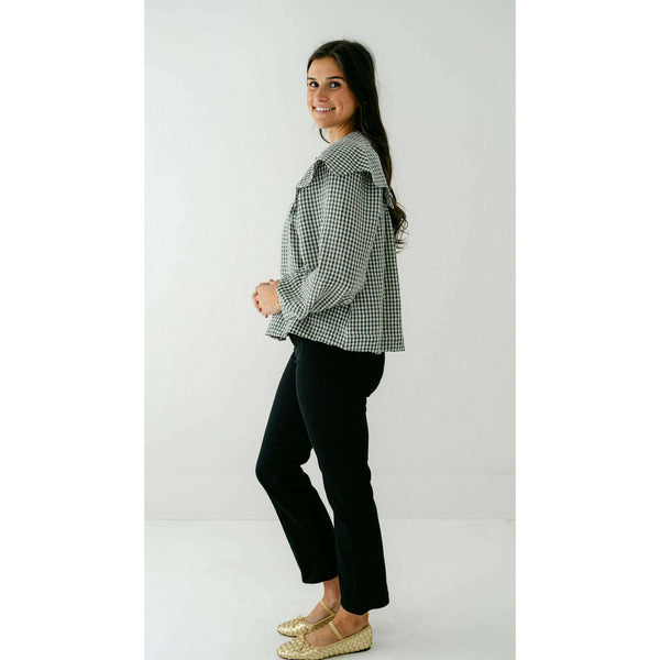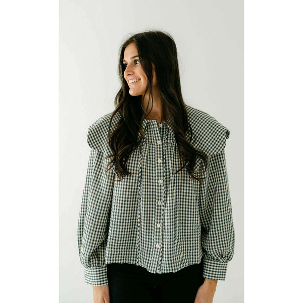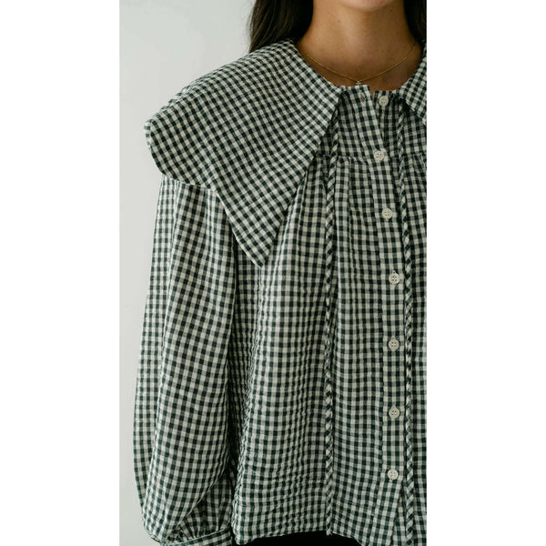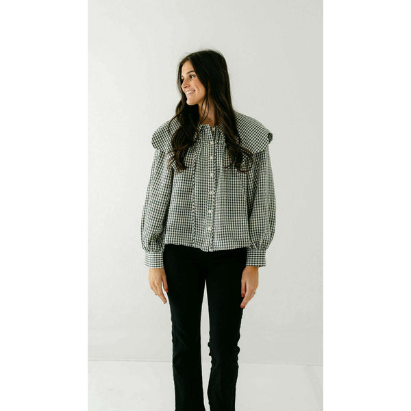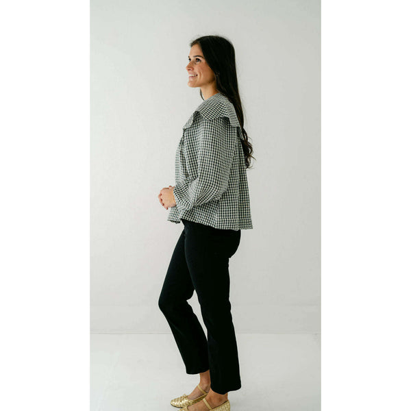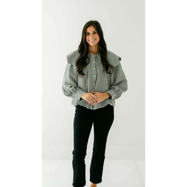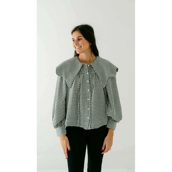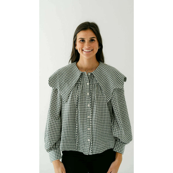Meet your new fall essential—the Karlie top combines a delightful green gingham pattern with a charming Peter Pan collar that instantly elevates any outfit. This season's must-have piece captures the cozy warmth of autumn while maintaining a fresh, preppy aesthetic...