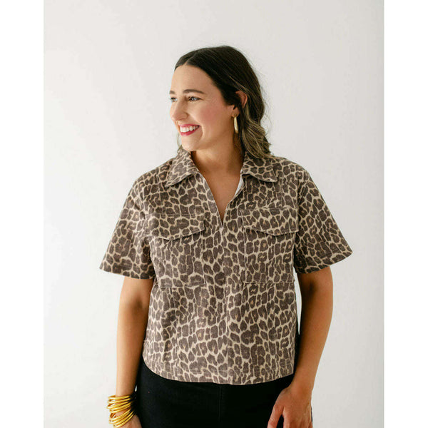 Karlie Leopard Denim Pocket Tee