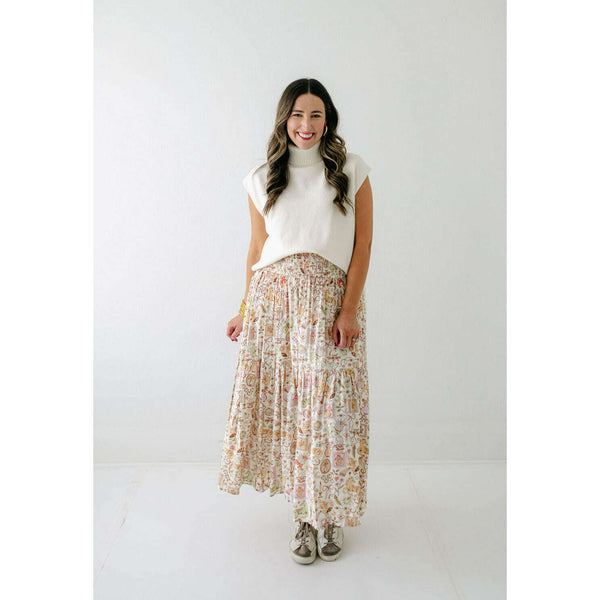 Step into whimsy with the Karlie Magical Storybook Smocked Maxi Skirt. Featuring a charming, playful print, this maxi skirt brings a touch of magic to your wardrobe. The smocked waist offers a comfortable, flattering fit that moves gracefully with you....
