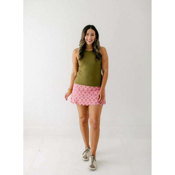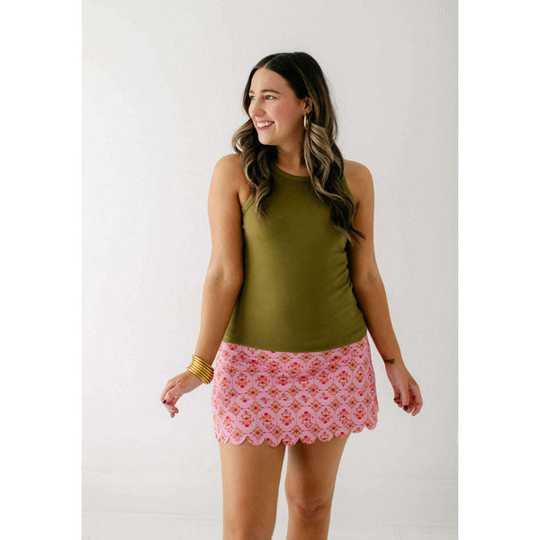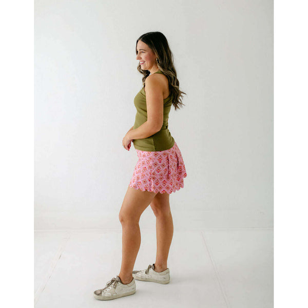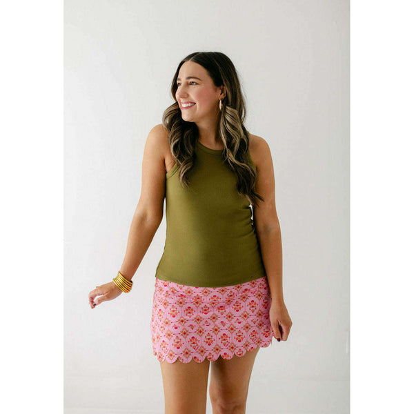 The Karlie Olive Ribbed Tank is a must-have piece that combines comfort and style effortlessly. Its flattering ribbed texture adds subtle detail, making it perfect for pairing with the Karlie London Floral Scallop Kourt skort for a complete, chic outfit....