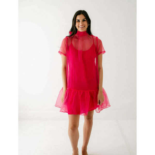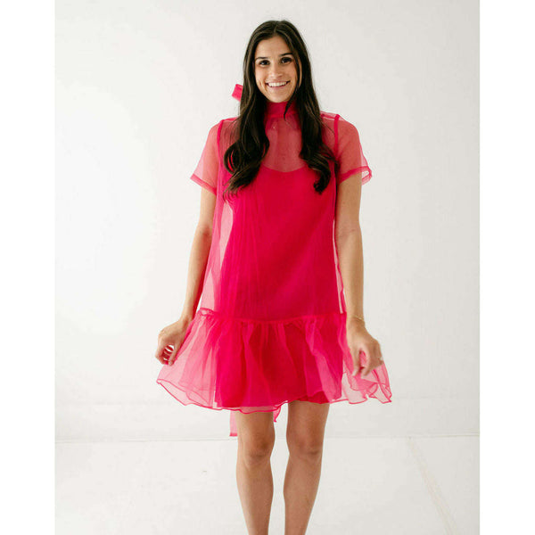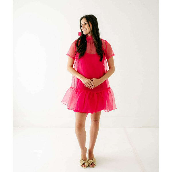 Elevate your holiday celebrations with the Karlie Organza Mock Neck Bow Dress in Pink. This charming piece features an elegant mock neck and delicate bow detail, crafted from luxurious organza that catches the light beautifully. Perfect for festive gatherings, special...