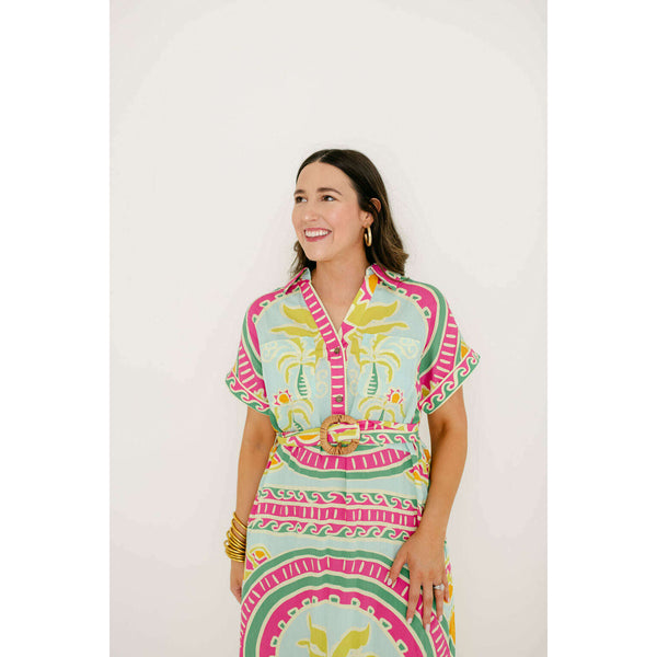 Elevate your warm-weather wardrobe with the Karlie Palm Beach Shirt Maxi Dress, a breezy essential that effortlessly transitions from beach days to casual outings. The included belt lets you customize your silhouette while the relaxed shirt styling keeps you cool...
