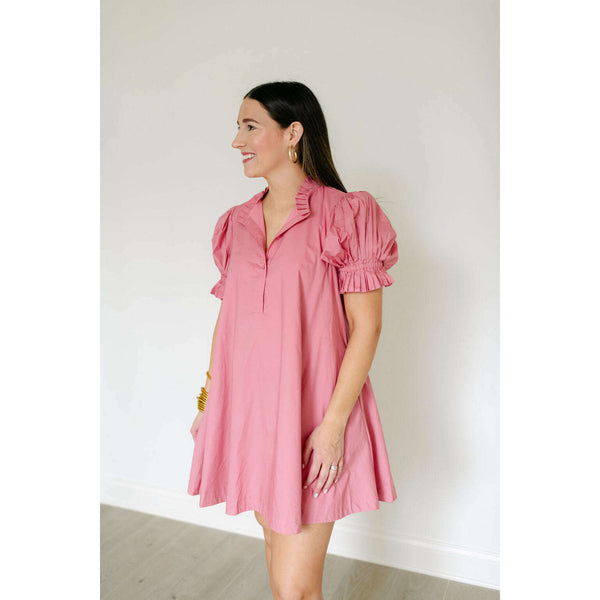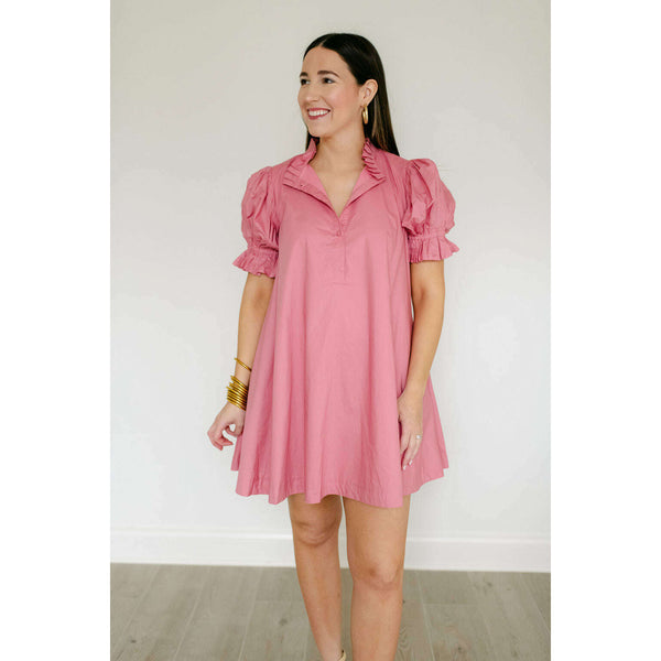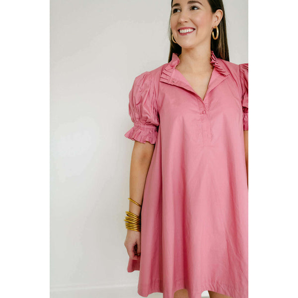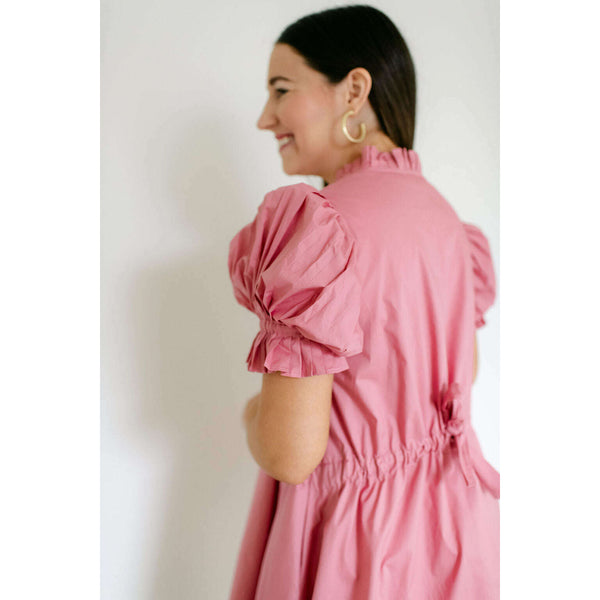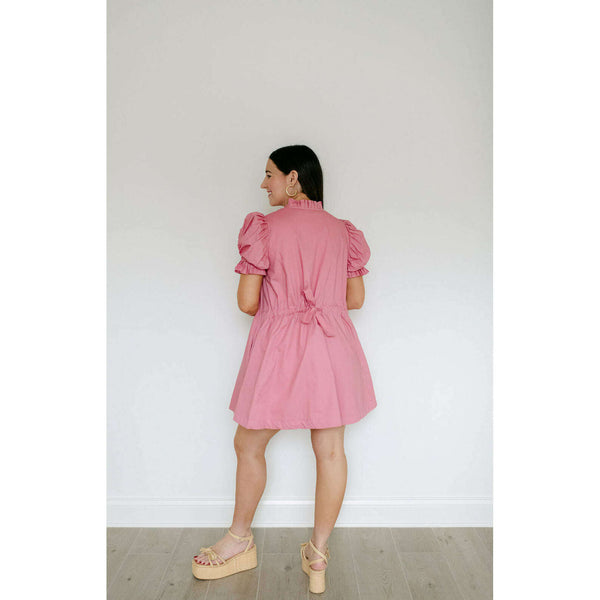 The Karlie Pink Solid Poplin Ruffle Neck Tie Back Dress is an adorable spring and summer essential that combines a charming ruffle neckline with a flattering tie back design. Its soft pink hue and perfectly fitted poplin fabric make it...