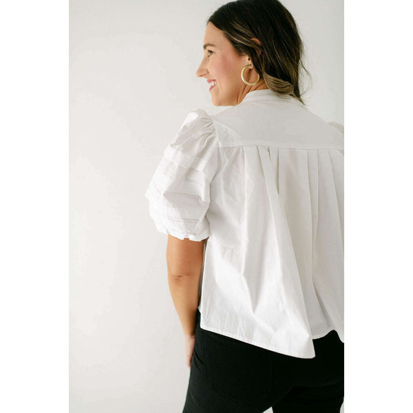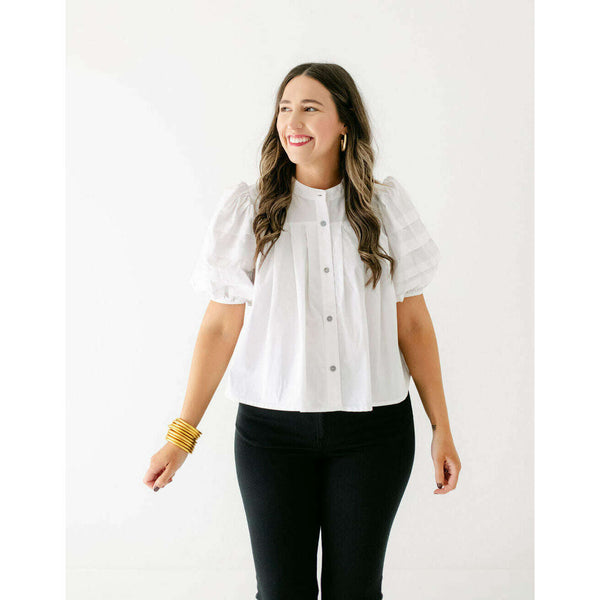 The Karlie White Poplin Pleated Sleeve Top is a charming essential for your fall wardrobe. Its crisp white poplin fabric and delicate pleated sleeves bring a fresh, playful touch to any outfit while maintaining a classic look. Perfect for layering...