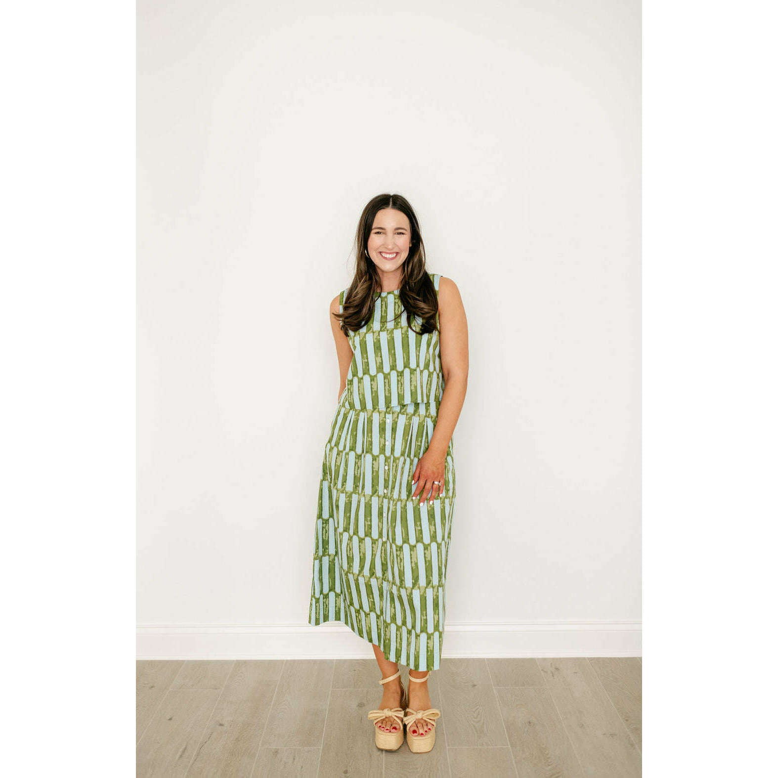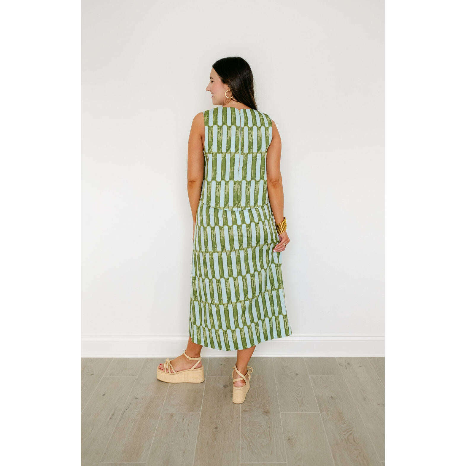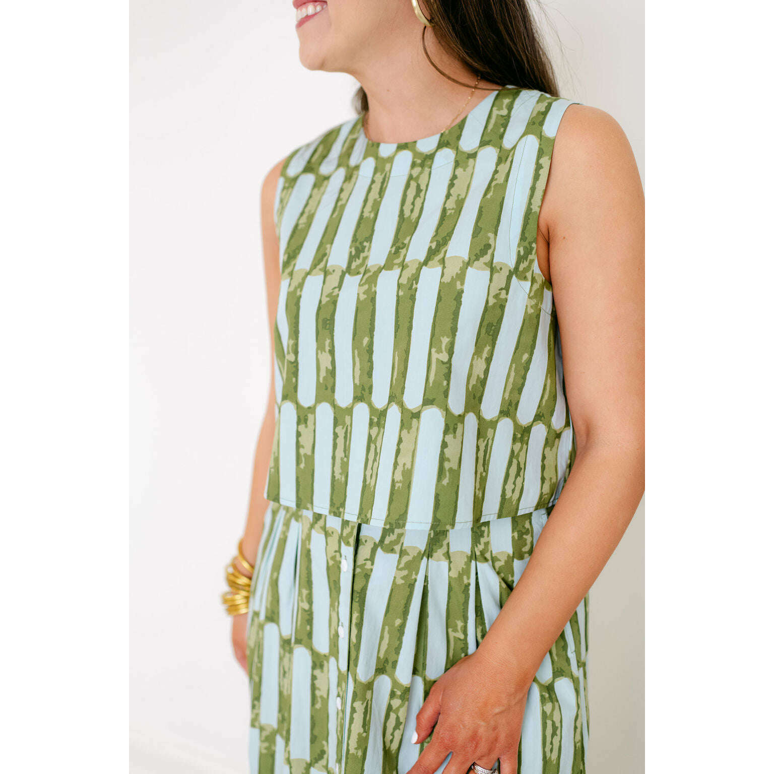The Crop Top is a versatile piece for both bold and transitional dressing this season! The Sirocco print features sweeping abstract shapes reminiscent of desert winds and sun-faded tilework. Pair with the Scout Skirt for a chic, resort-ready set.