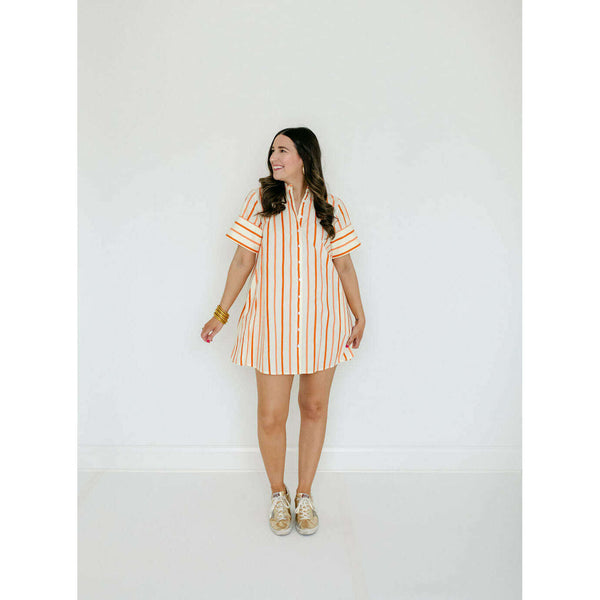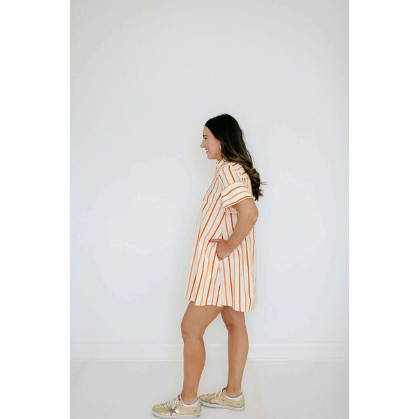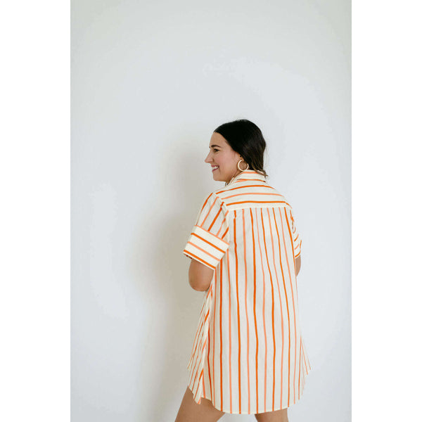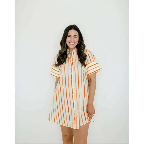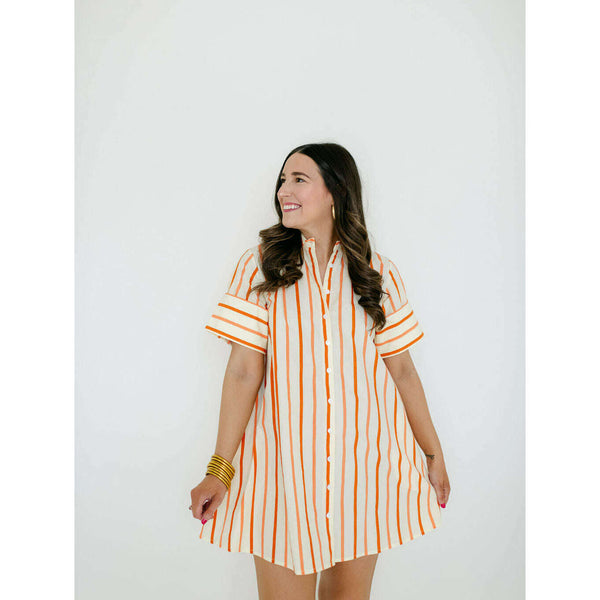 The Dock Dress is a short-sleeved, button-down mini shirt dress with a relaxed, A-line silhouette. The structured collar and full-length button placket give it a classic, tailored feel, while the loose fit adds an effortless, easygoing charm. Pair back to...