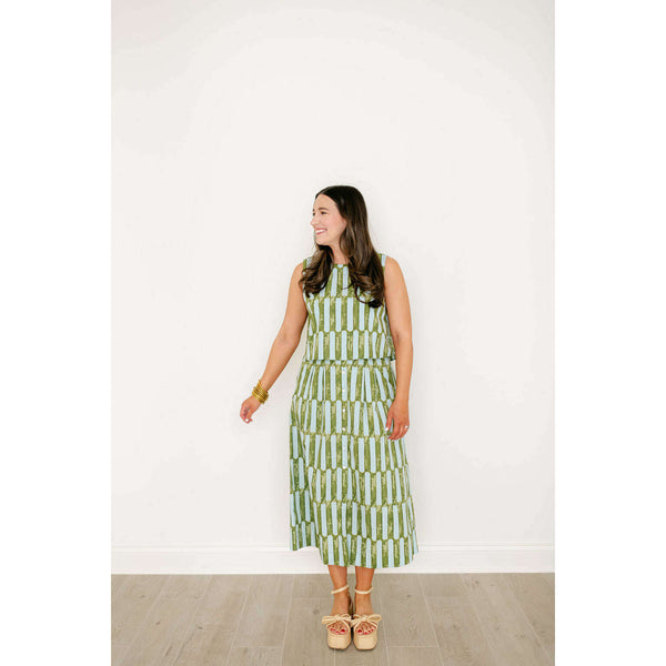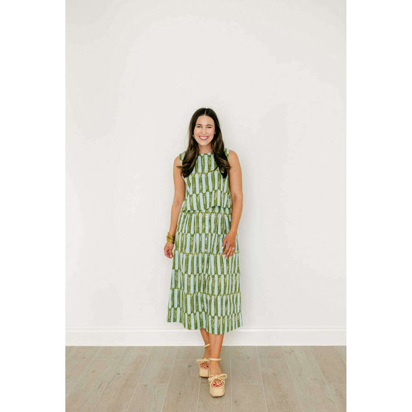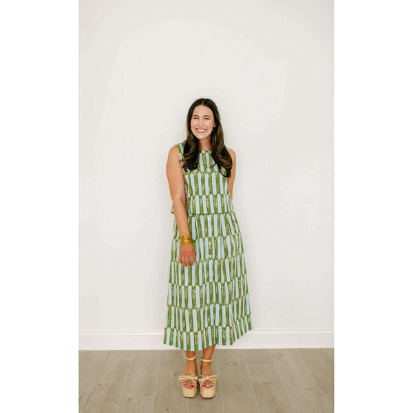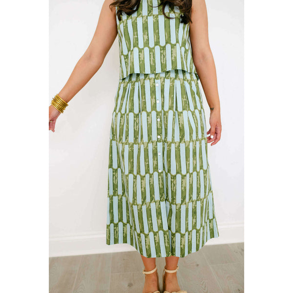The Scout Skirt is a high-waisted, A-line silhouette with a flattering midi length. It features a button-front closure, wide waistband, and soft pleating for added volume and ease. Side pockets add a functional touch, making it as practical as it...