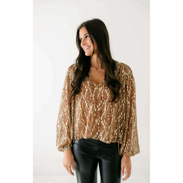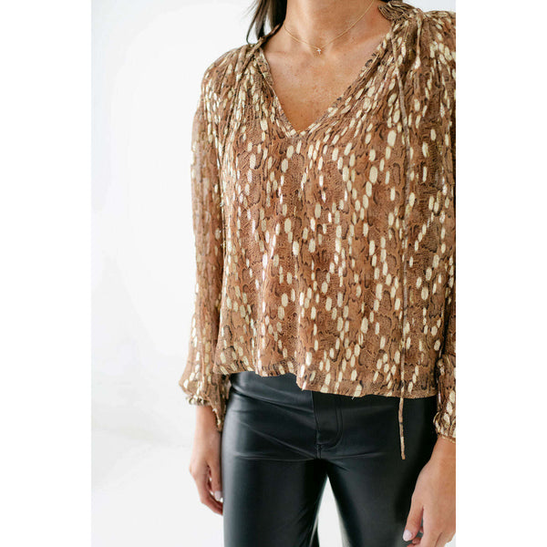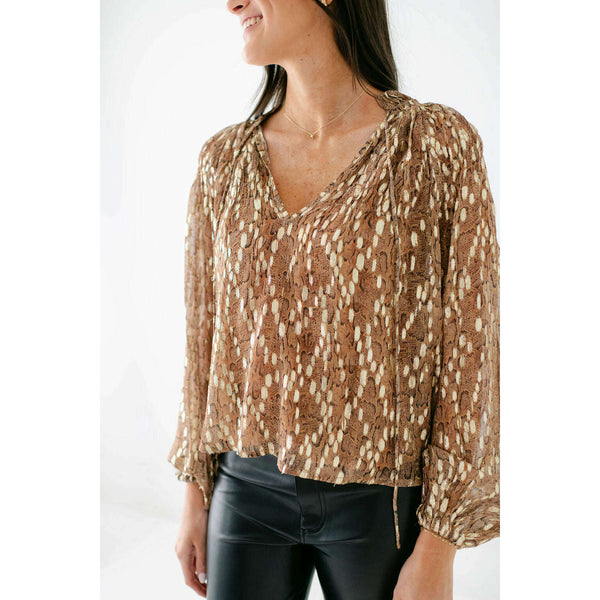 This Love the Label Meredith Top in Cavalier Python Print is the ultimate holiday statement piece, combining bold style with festive elegance. The shimmering gold lurex threading adds a touch of glamour and sparkle that's perfect for celebrations and special...
