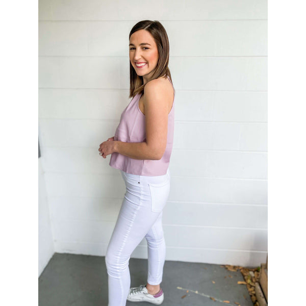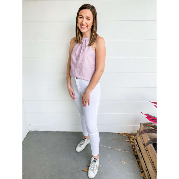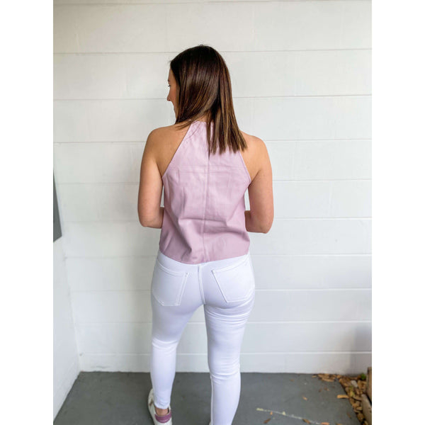 Our Lucy Paris Milana Halter Faux Leather Halter top is so cute and we are loving the faux leather trend! Pair this top with jeans or a skirt and tennis shoes for a full look! Fits true to size, Caroline...