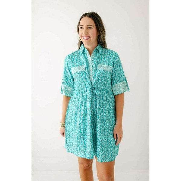Introducing the Marigold by Victoria Dunn Emilia Dress in Blue Atoll. This dress is a fun, throw on and go option that's perfect for spring and summer. With its adorable design, it's the perfect addition to any wardrobe. Fits true...