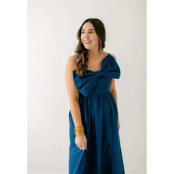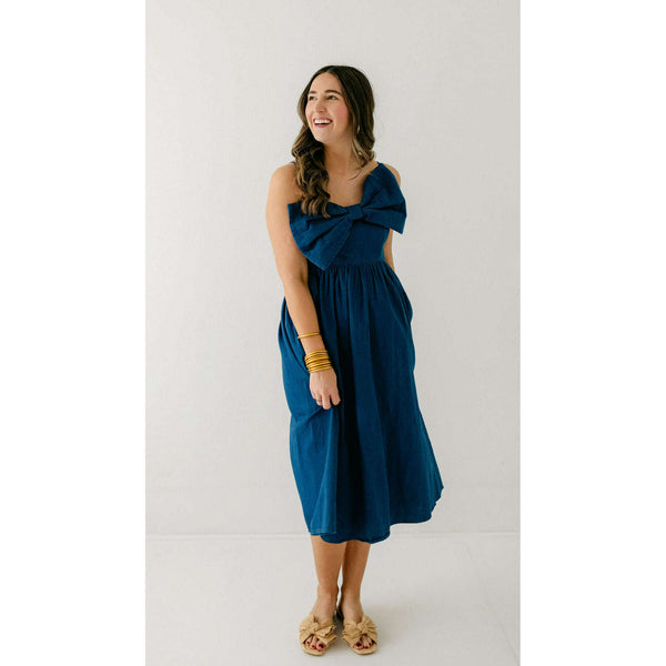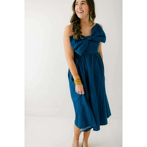 Get ready for the ultimate spring and summer look with our Meet Me in Santorini Azure Chambray Maxi Dress! This dress features adorable bow detailing and a playful denim material. Perfect for any occasion, this dress is sure to turn...