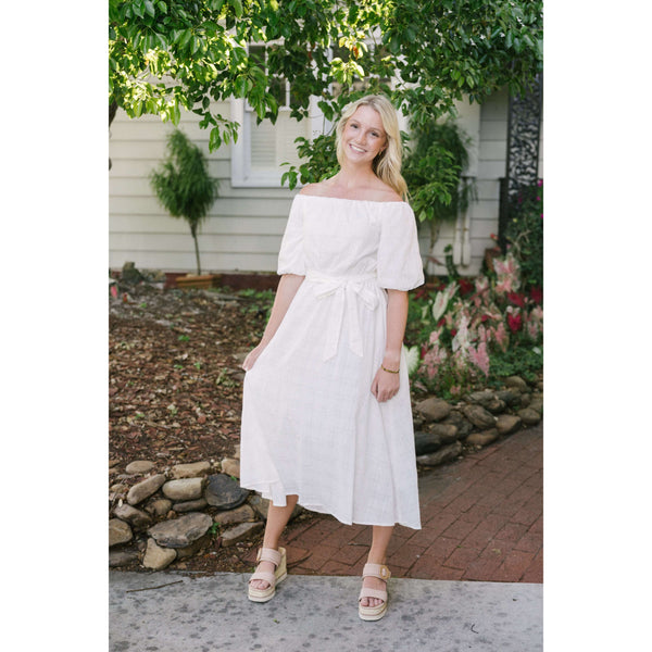 How pretty and simple is our Mink Pink Bowes Midi dress?! We love a good white dress for summer and the subtle pattern on this dress makes it even cuter. You can easily dress this up with a pair of...