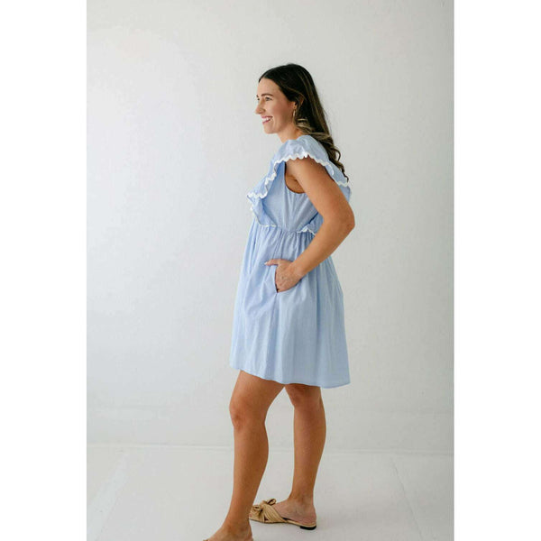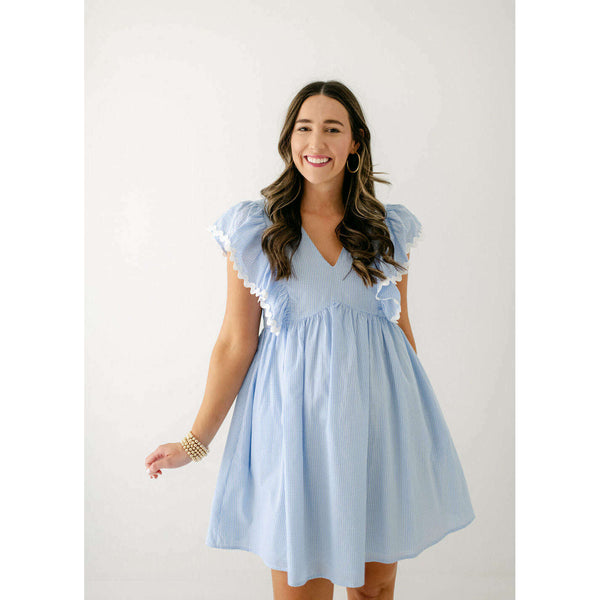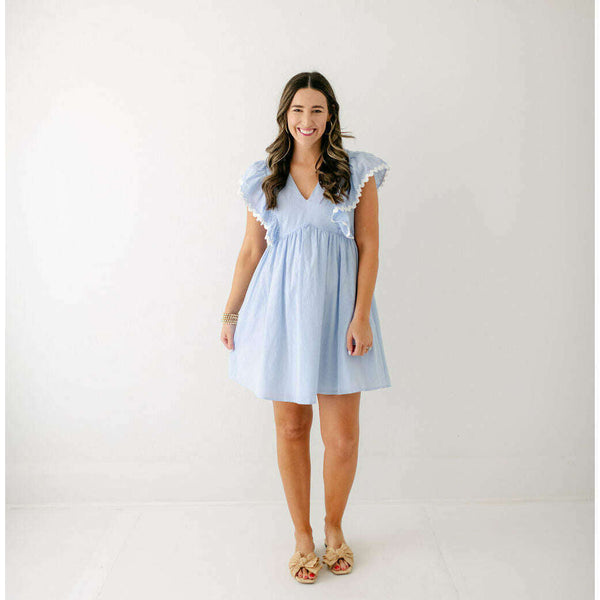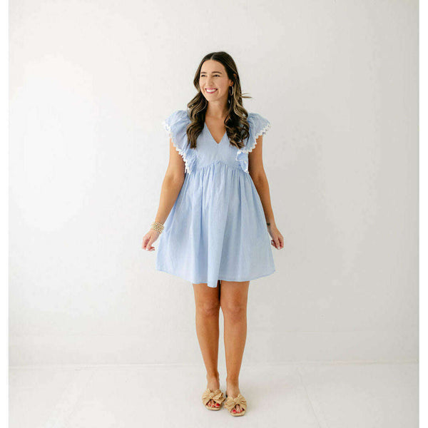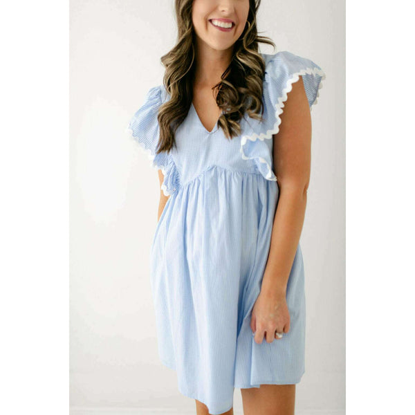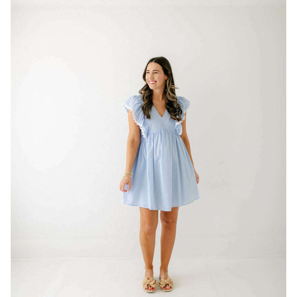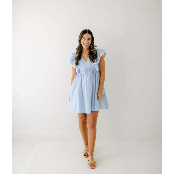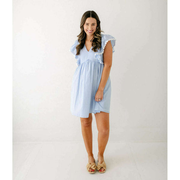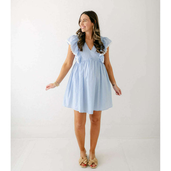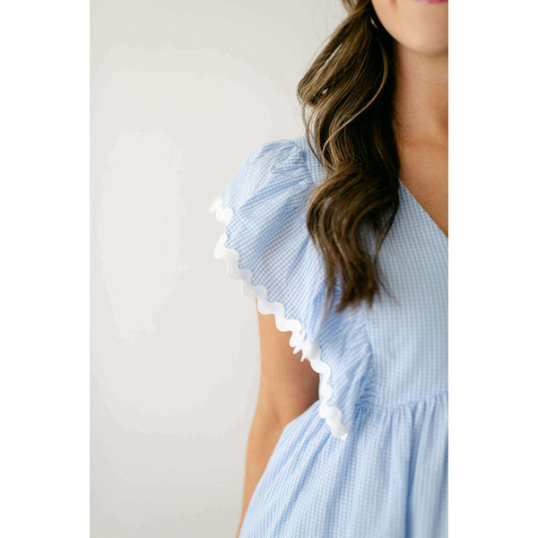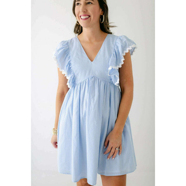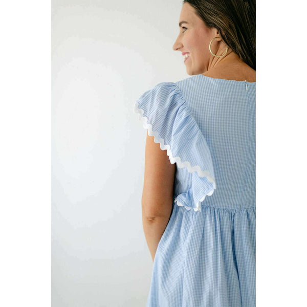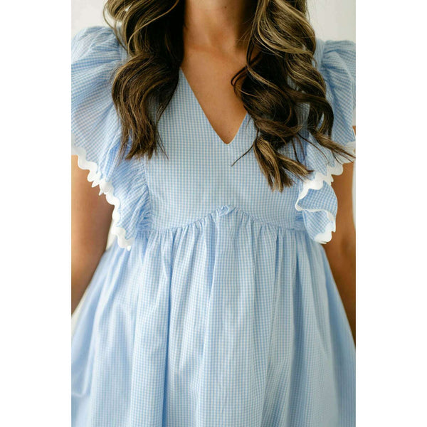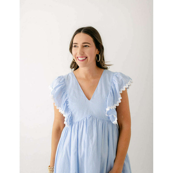 The Prosperina Fairchild Blue Micro Gingham Cotton Mini Dress is perfect for sunny afternoons spent enjoying simple pleasures. Its cheerful style makes it an ideal choice for relaxed moments with friends or family under the open sky. This mini dress...