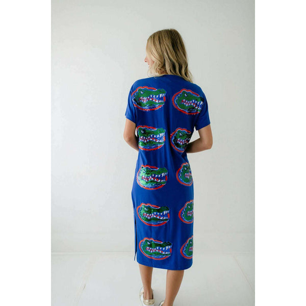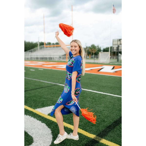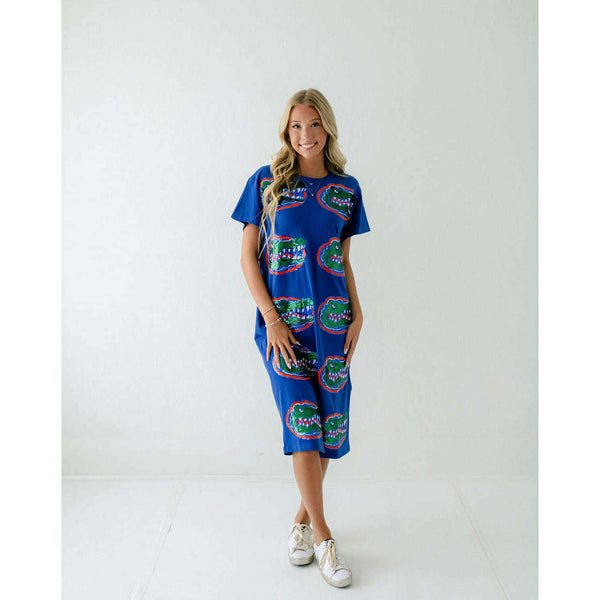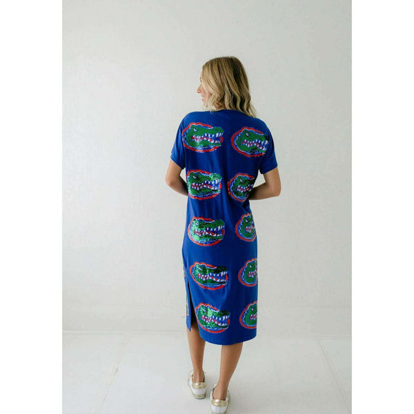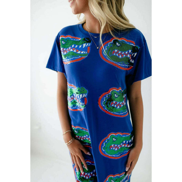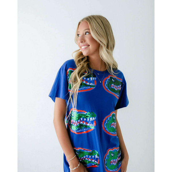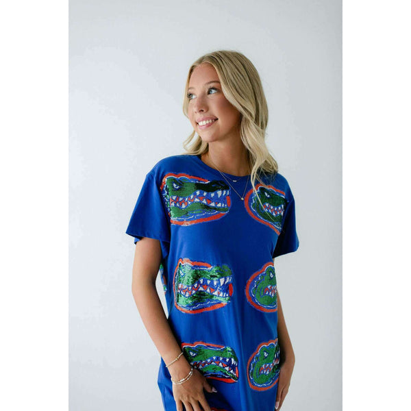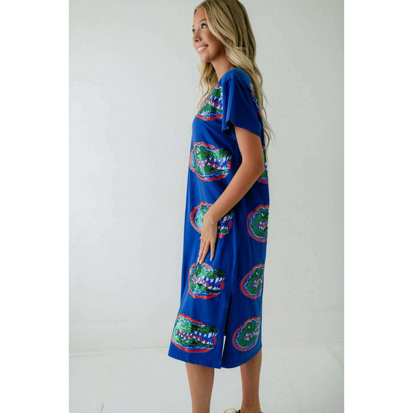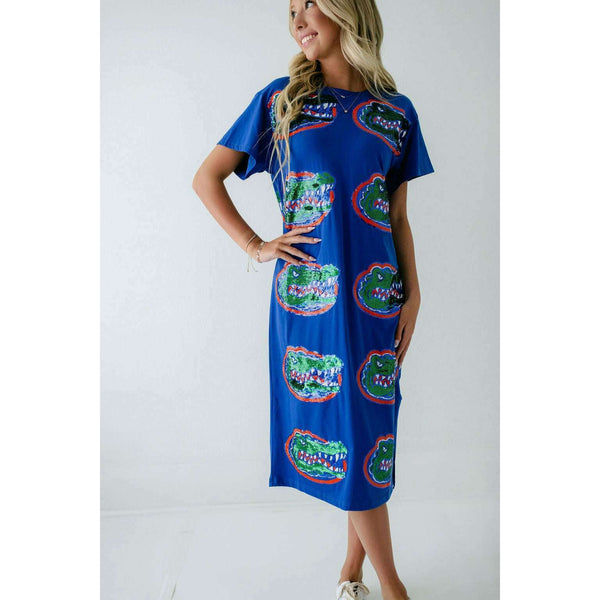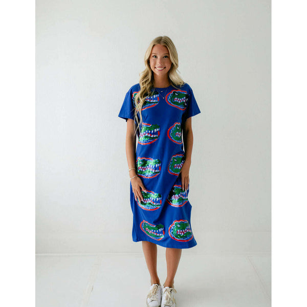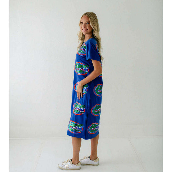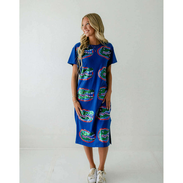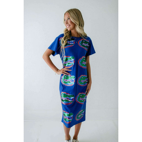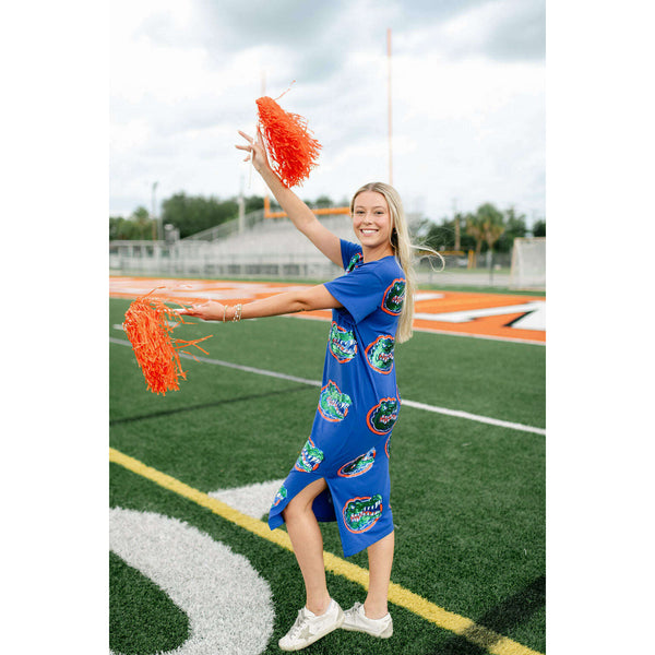 Show your team spirit in style with the Licensed Florida Mascot Midi Tee Dress. Featuring a dazzling sequin design, this lightweight and comfortable dress is perfect for game day excitement. Its breathable fabric ensures you stay cool while cheering on...