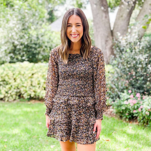 We love this Sadie & Sage Daydreamin' Ruffle skirt! The floral print is so pretty and such an easy piece to transition us into fall with. Pair this skirt with the matching Daydreamin' Smocked Top to make it a full...