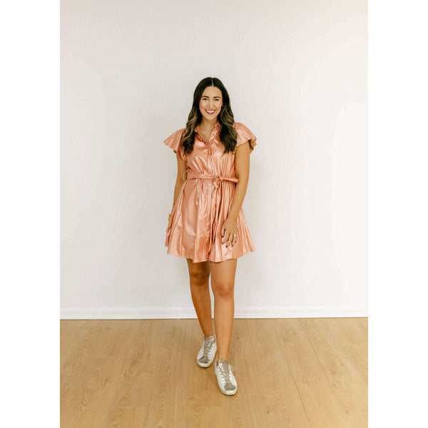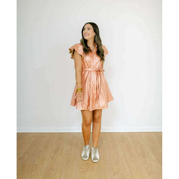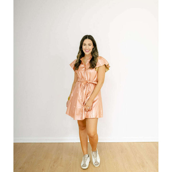 Get ready to make a statement in the Sincerely Ours Aly Dress! This dress is just as cute as it is fun with its rose gold faux leather and flattering fit. Perfect for fall or any upcoming holiday parties, this...