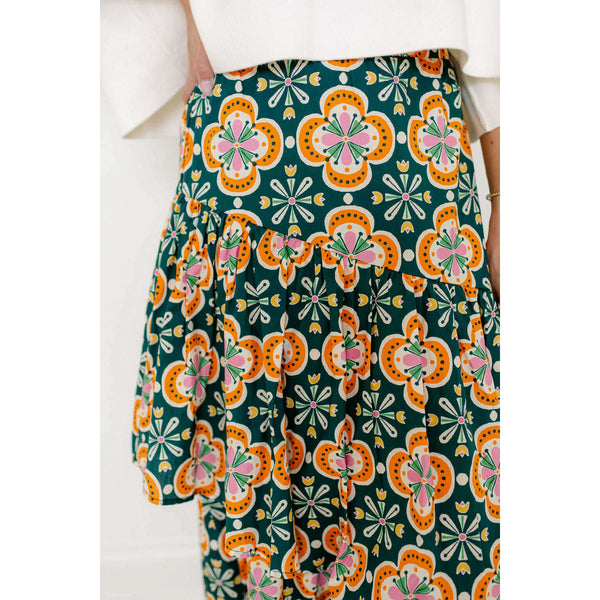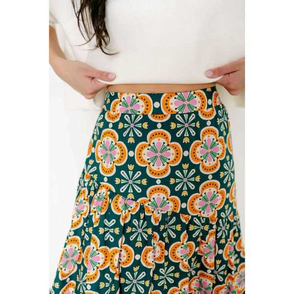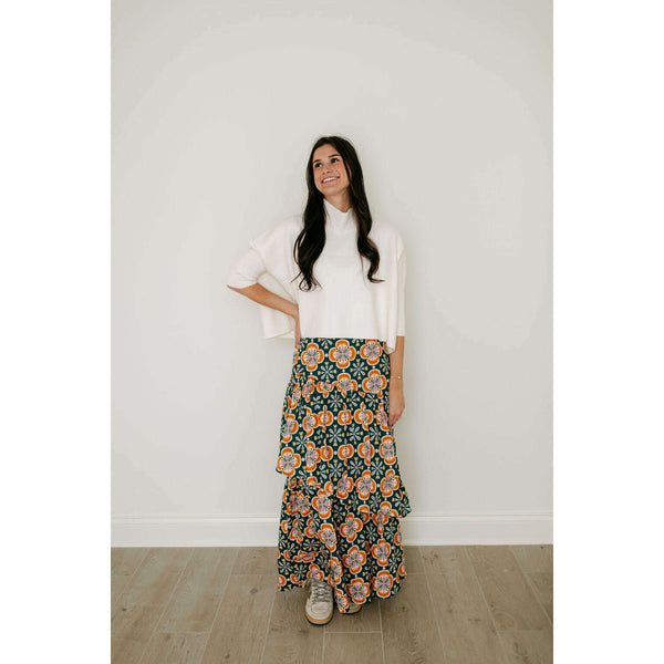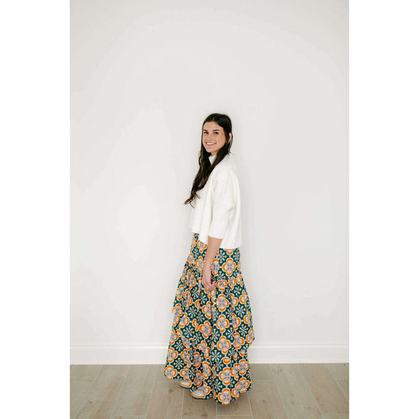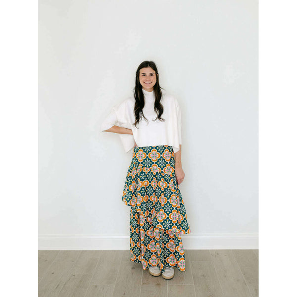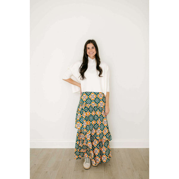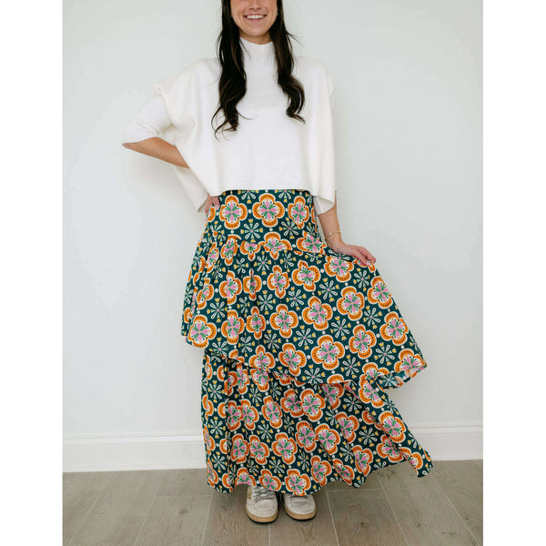 The Sincerely Ours Celeste Maxi Skirt in Clementine Tile brings effortless style with its vibrant print and charming tiered layers that create beautiful movement with every step. Pair it with our Kerisma white aja for a fresh, put-together look that's...