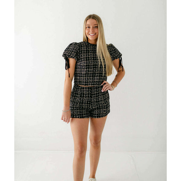 Get ready to channel your inner Blair Waldorf with our Sincerely Ours Tabitha Shorts in Black Tweed! This playful set is perfect for any occasion and can be dressed up with heels or dressed down with some fun boots. Complete...