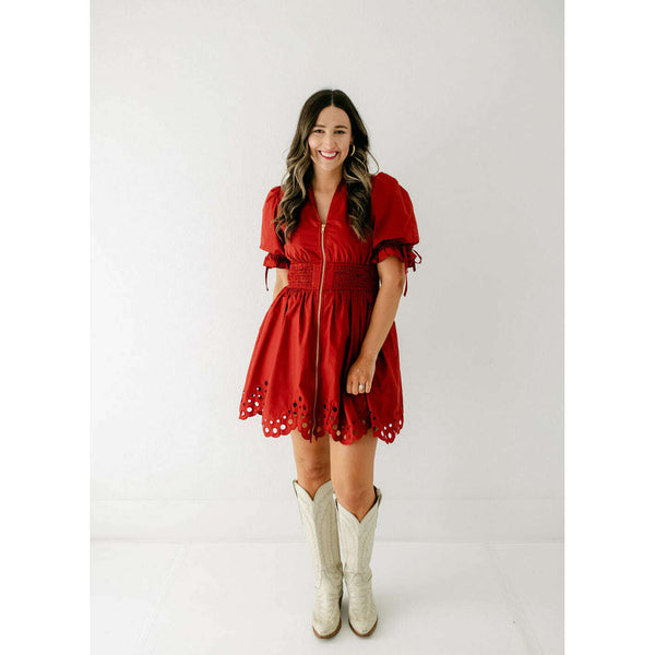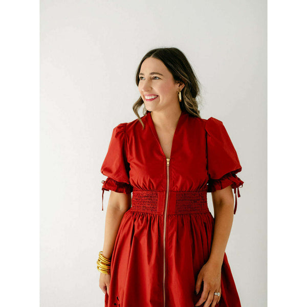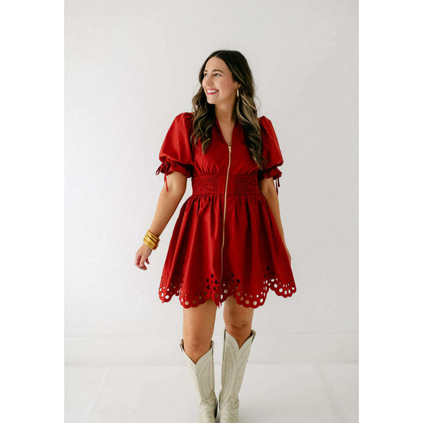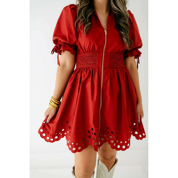The Bella Eyelet Zip Up Dress in Brick is a charming choice for fall. Its delicate eyelet detailing adds a touch of elegance, while the warm brick color perfectly complements the season. The convenient zip-up design combines style with easy...