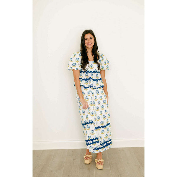 The Hayley Block Print Ric Rac Set is the perfect spring essential, featuring charming block print details and playful ric rac accents that instantly elevate any outfit. Embrace the season with this adorable set that combines style and personality in...