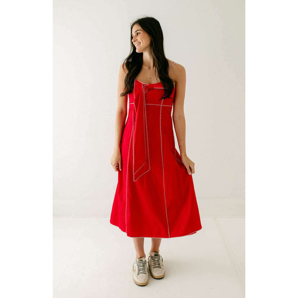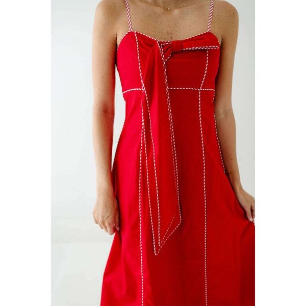 This charming red midi dress features an adorable bow detail that instantly elevates your holiday wardrobe with playful sophistication. The flattering silhouette and festive hue make it perfect for seasonal celebrations, from intimate gatherings to special occasions. Whether you're heading...
