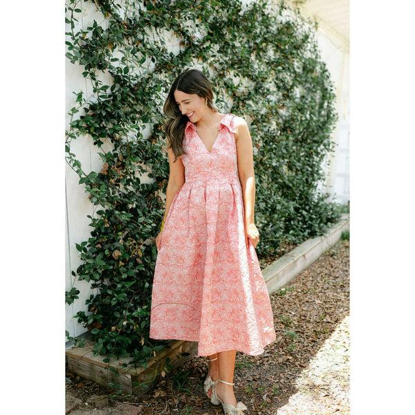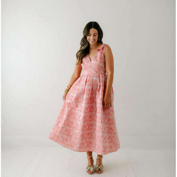 The Lucy Pink Floral Bow Shoulder Dress