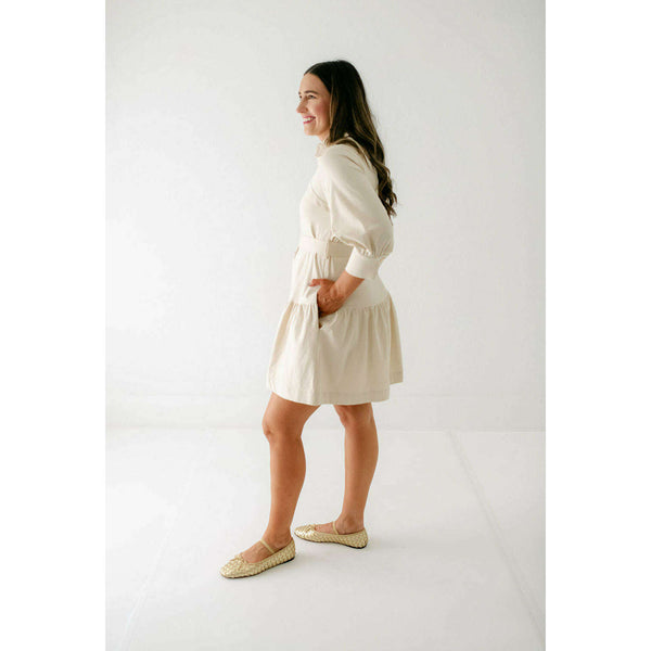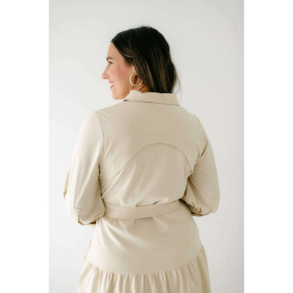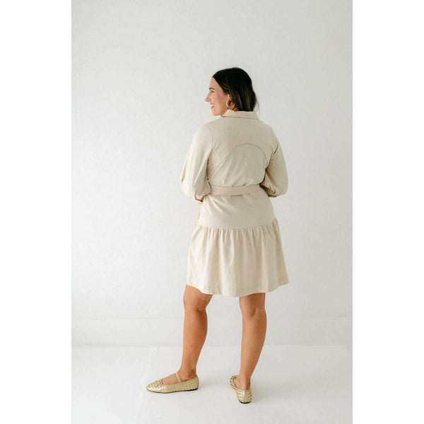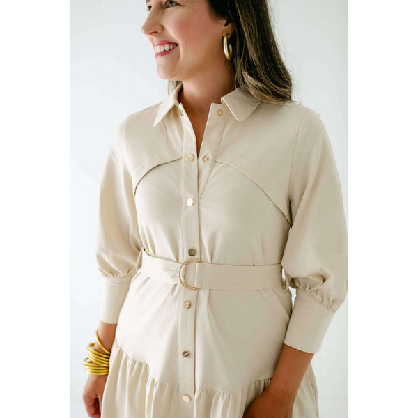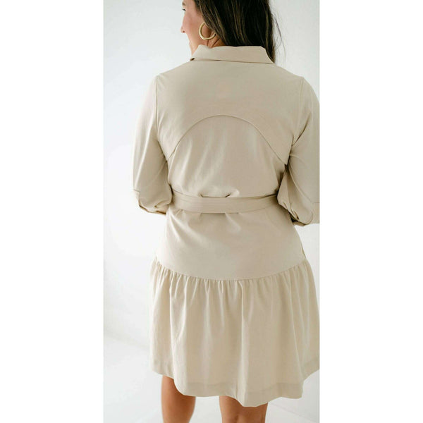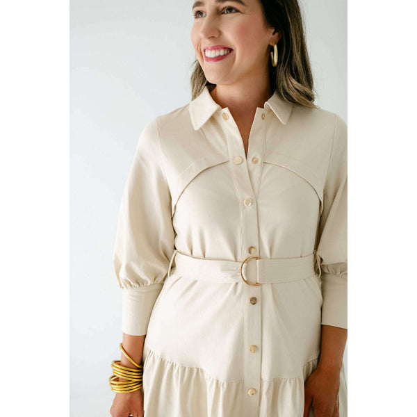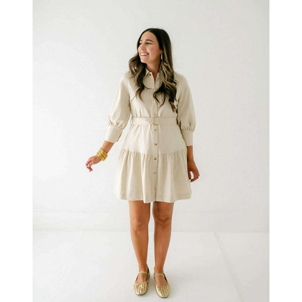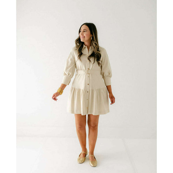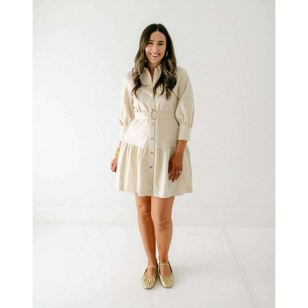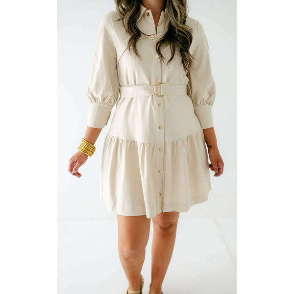 Elevate your wardrobe with the THML Cream Belted Button Up Dress. Its soft cream color pairs beautifully with boots for a chic, effortless look. Featuring a flattering belted waist and button-up front, this dress combines comfort with style, making it...
