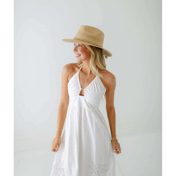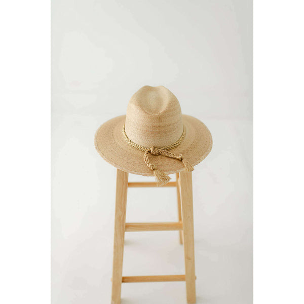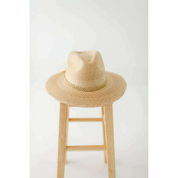 Tipsy Threads Gold Braid Natural Palm Hat