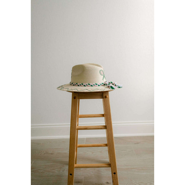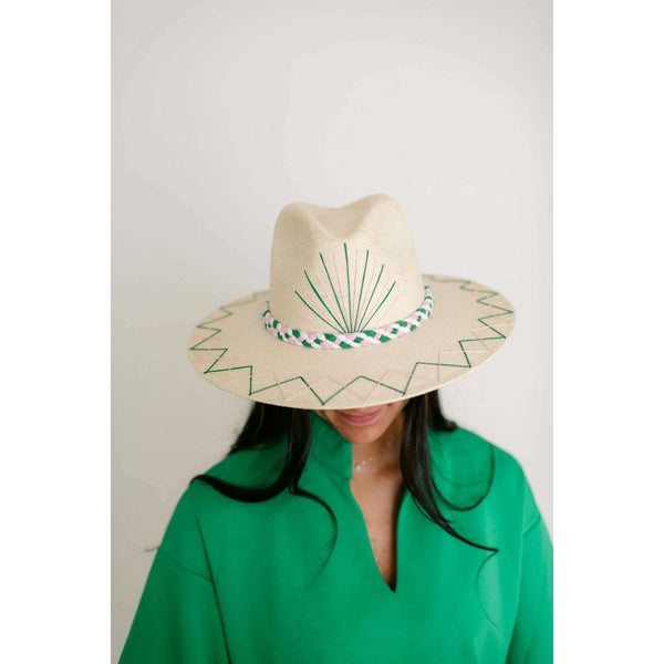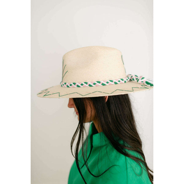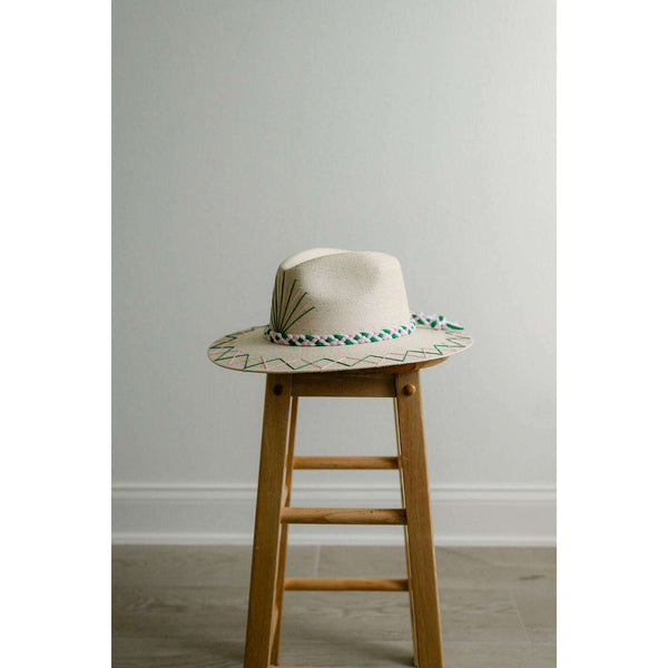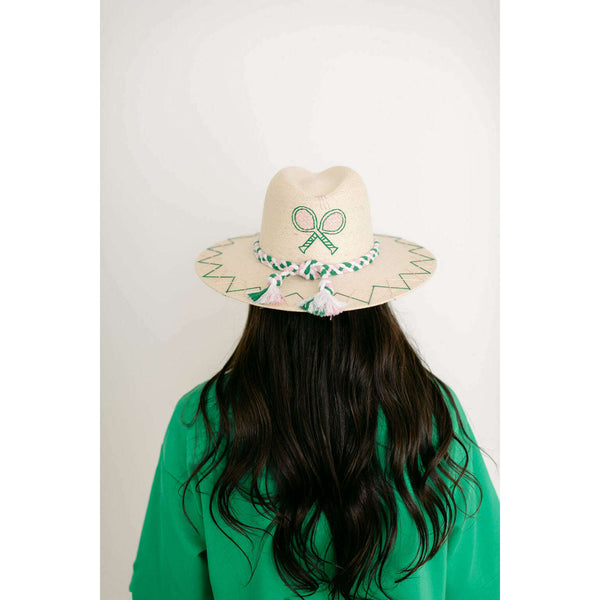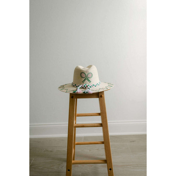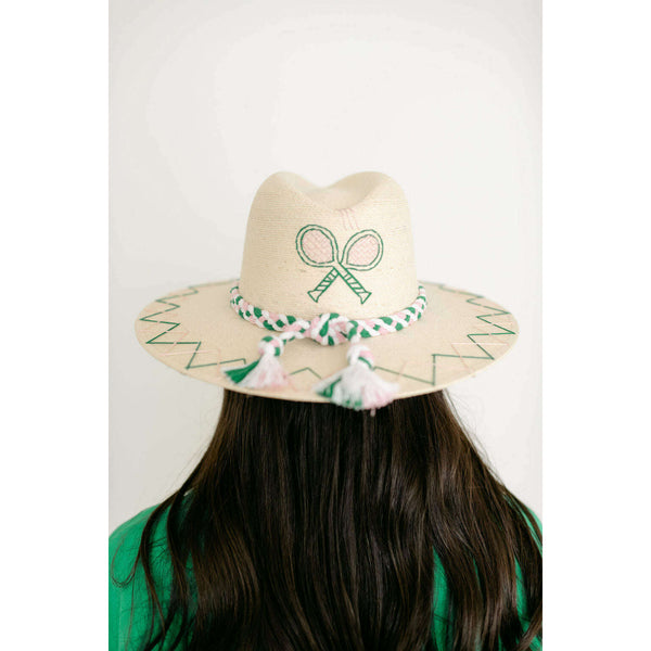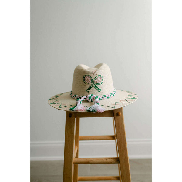 Tipsy Threads White Palm Tennis Racket Pink and Green Hat