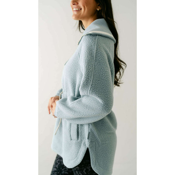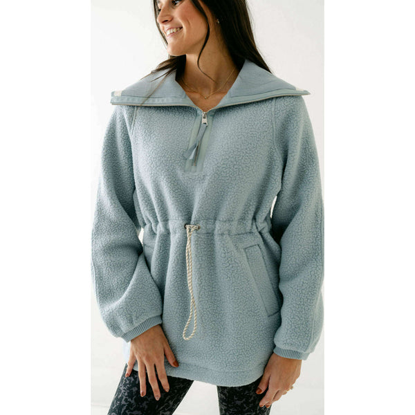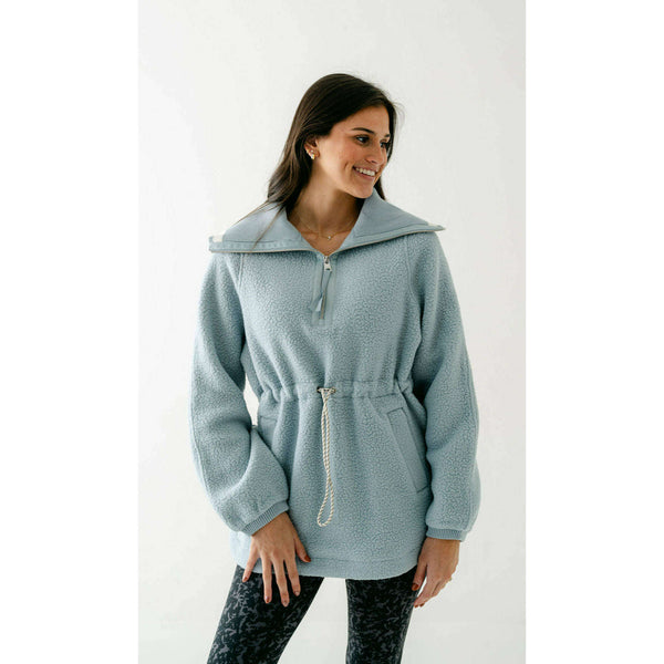 The Varley Ashby is a longline half-zip made from our warm and insulating Plush Borg Fleece and refined with stripe detailing along the collar. It's cut to an oversized fit with an adjustable toggle waist that can be cinched in...