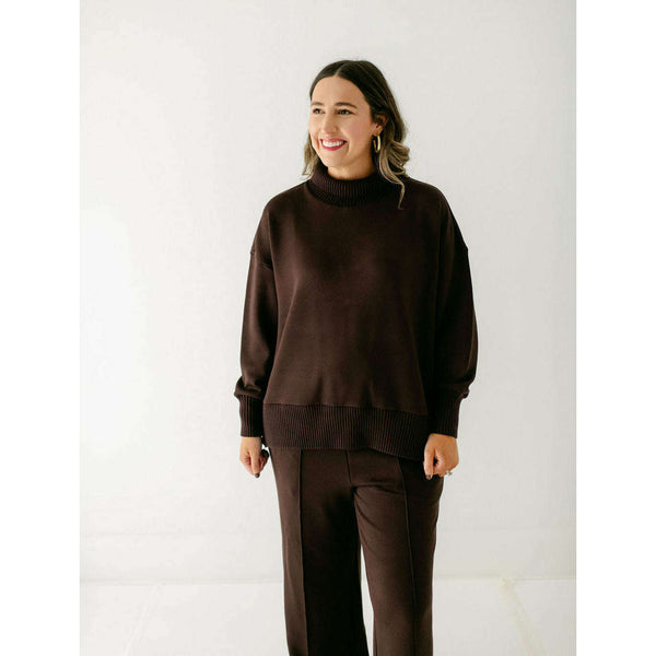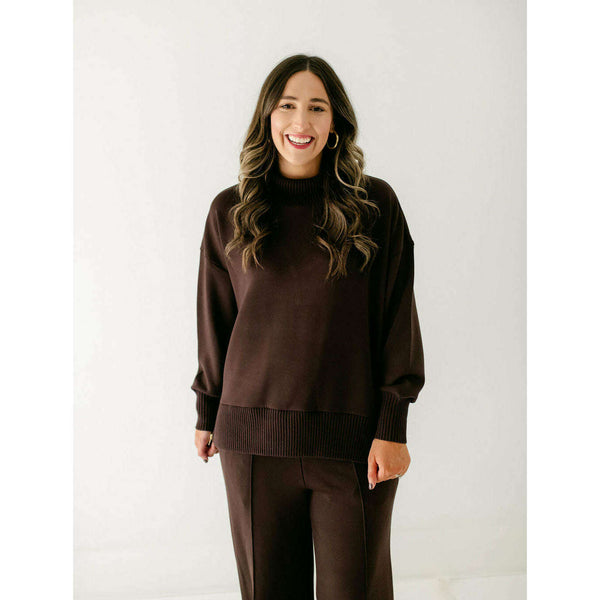 This essential sweatshirt in our Varley DoubleSoft® fabric boasts an oversized fit and modern high-neck design. Complete with knitted cuffs, neck, and hem, it includes deep side splits for enhanced movement and style. Fits true to size - to generous....