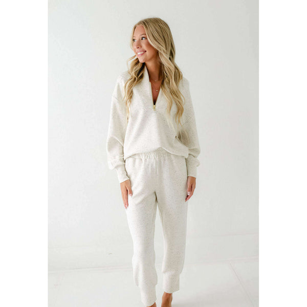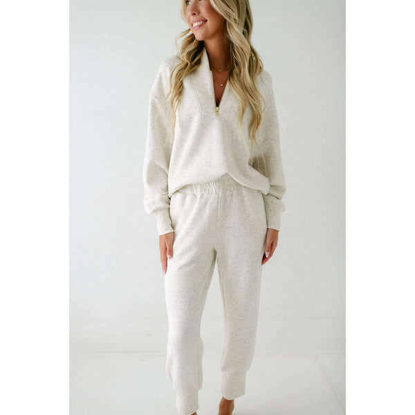 Varley Slim Cuff Pant 25" in Ivory Marl Fleck