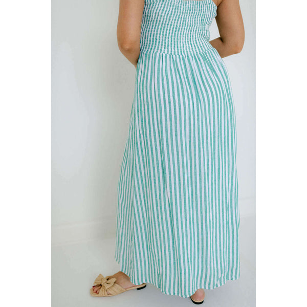 Made from a lightweight textured linen, this maxi dress is the definition of easy dressing. Its smocked bodice and adjustable straps provide a great fit while a square neck adds a flattering touch. Fits true to size, Caroline is wearing...