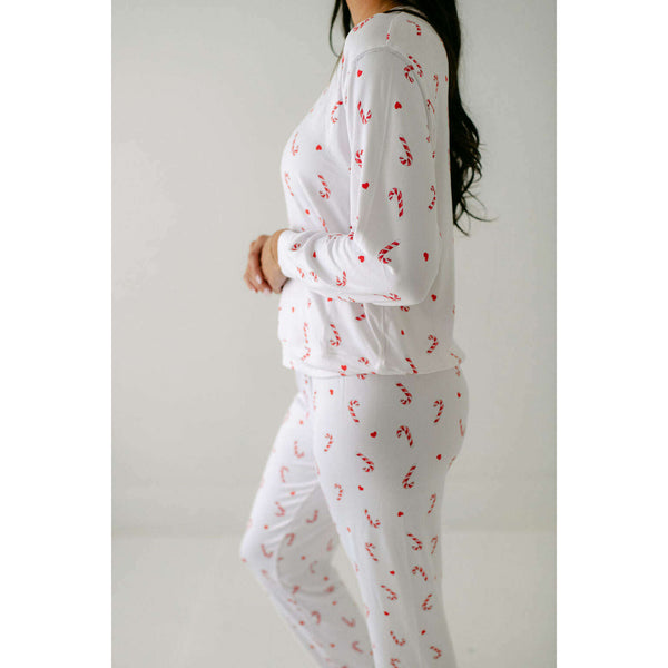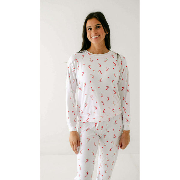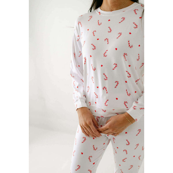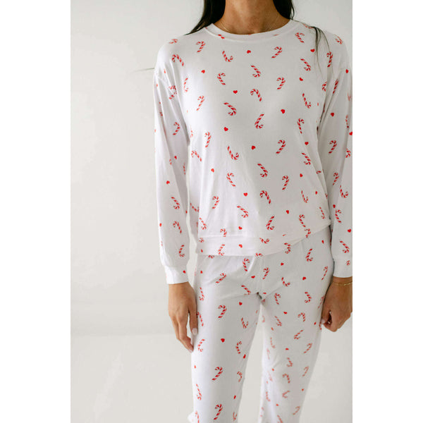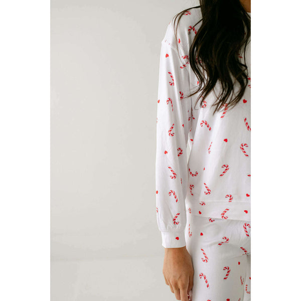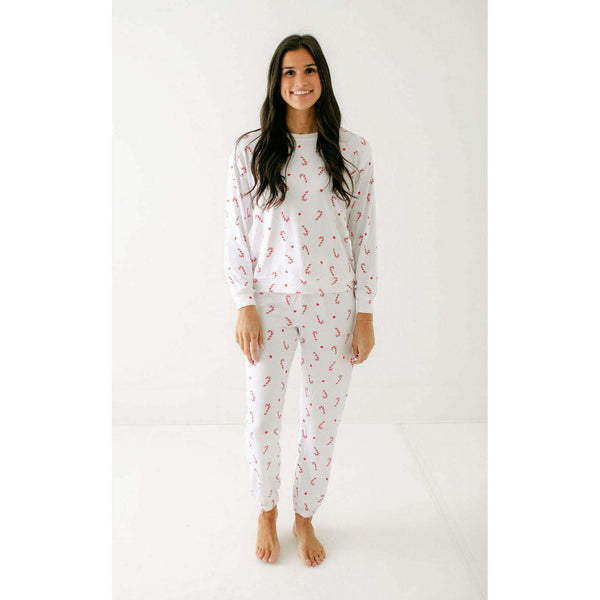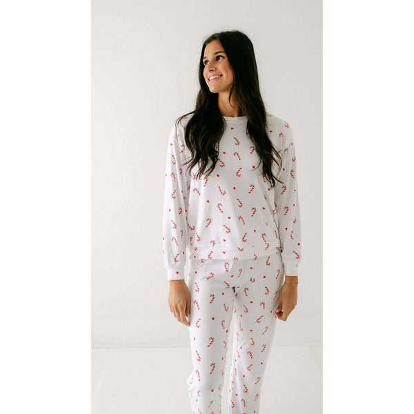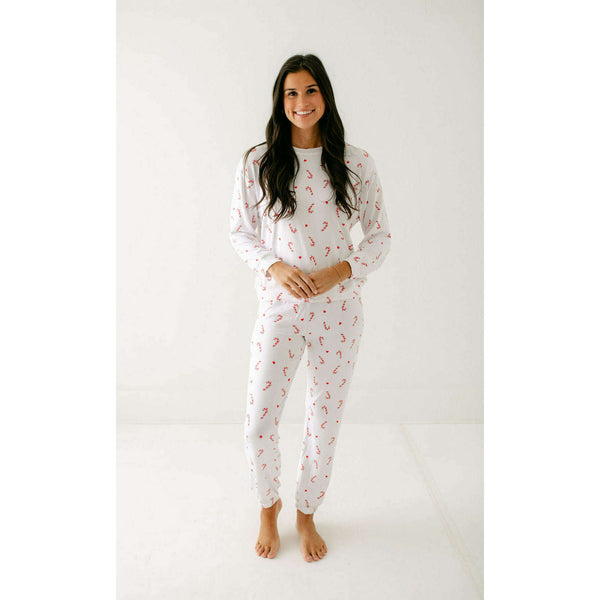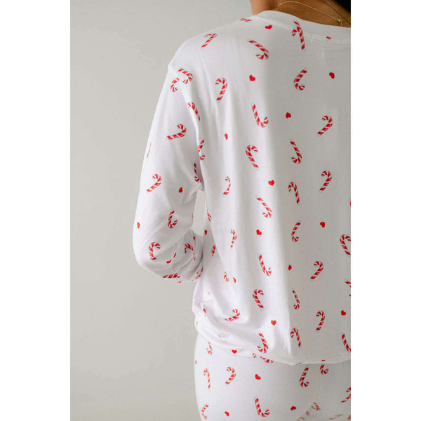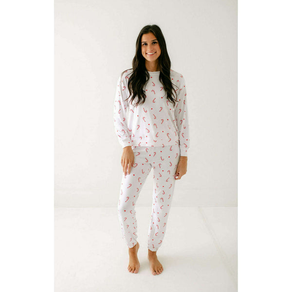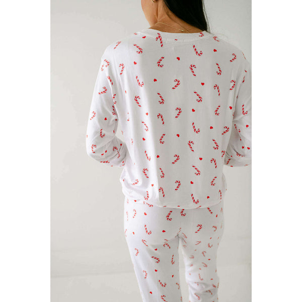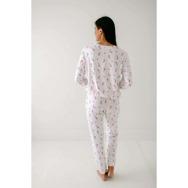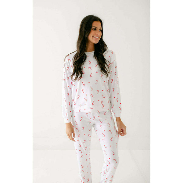 Sweet and seasonal, this relaxed set is crafted in silky jersey with a playful candy cane print. With a classic crew neck top and high-rise jogger, it’s the kind of festive cozy she’ll want all winter long. Fits true to...