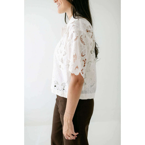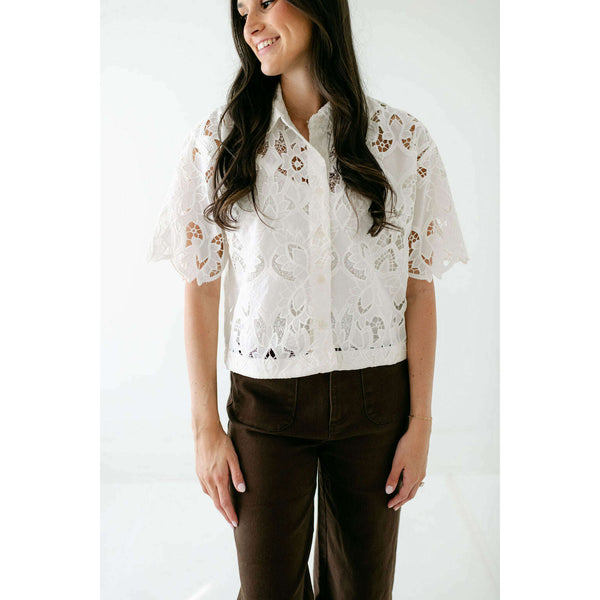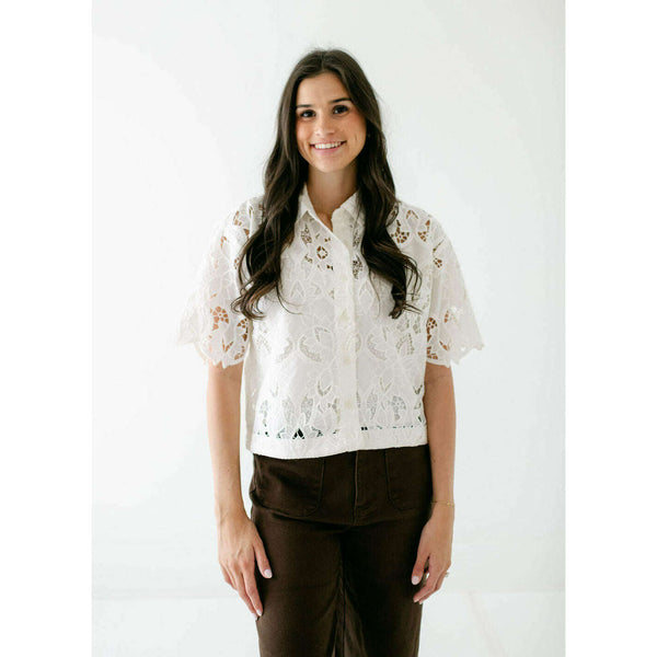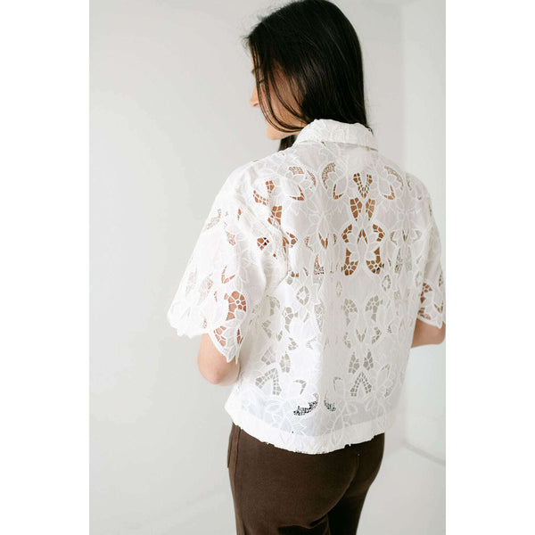 Intricate embroidery and an airy feel make this button-up an easy way to dress up your look. Delicate embroidery meets breezy cotton crepe in this short-sleeve button-up. The collared silhouette and airy fabric make it a polished yet easy layer...